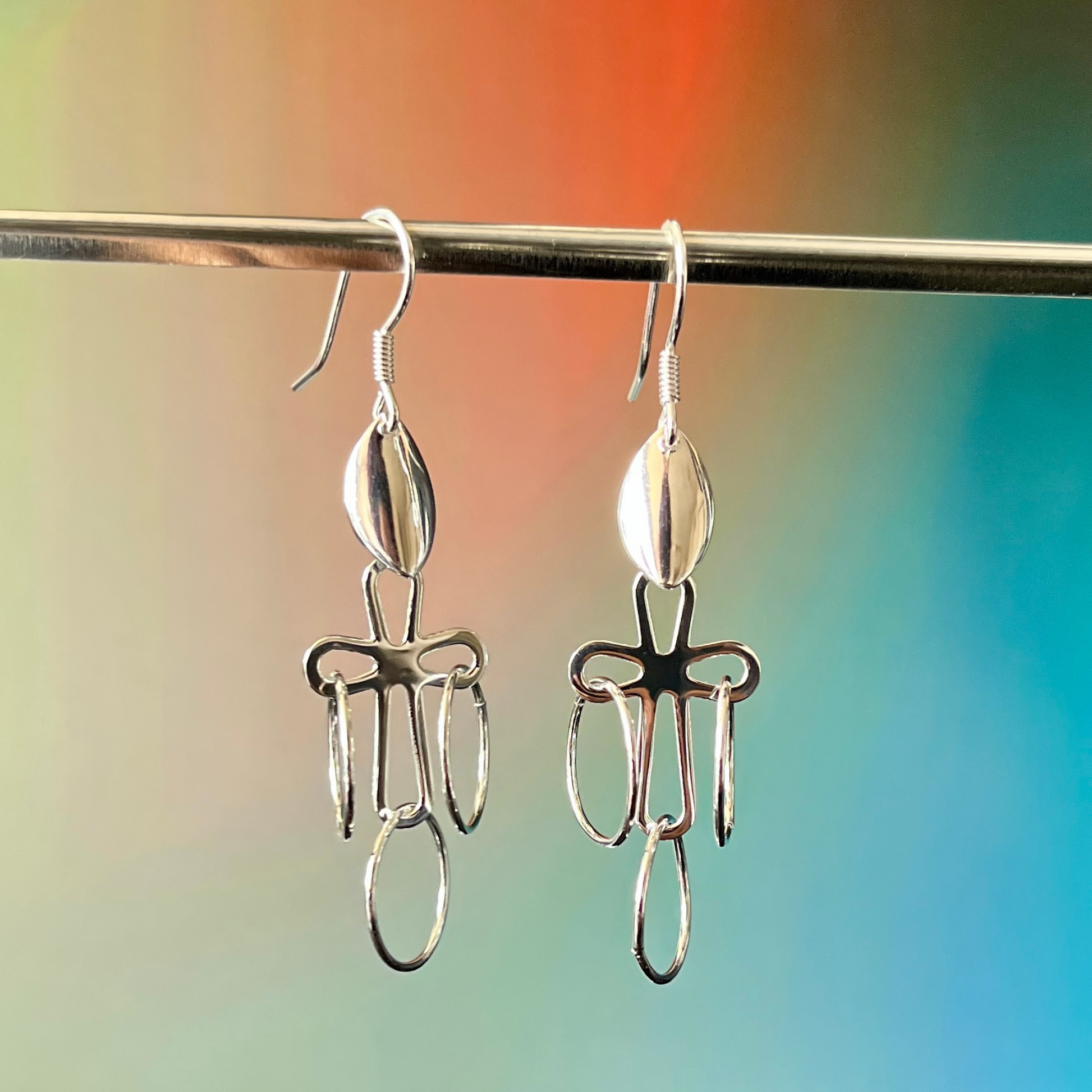 Un diseño artístico y único que combina formas orgánicas con óvalos colgantes, creando un efecto moderno y vanguardista. Fabricados en plata 925 italiana, son ideales para quienes buscan accesorios originales con un toque elegante y creativo.