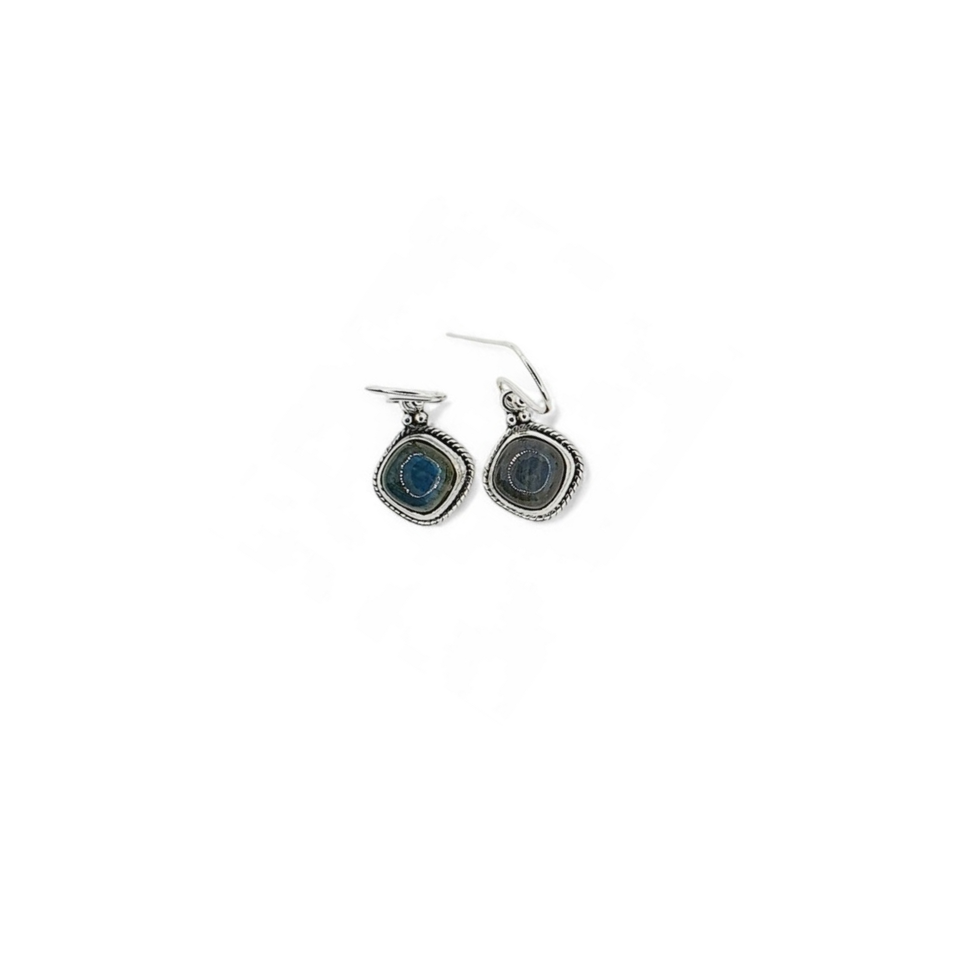 Aros de plata 925 italiana con piedra natural en corte cuadrado. La piedra azul profundo está enmarcada en un diseño de borde detallado, realzando su brillo natural y dando un aire artesanal y distinguido.