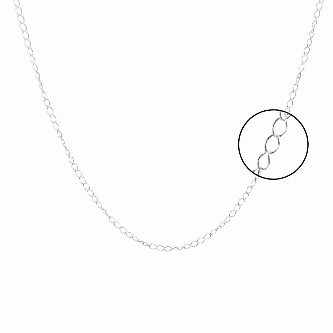 Cadena delicada con eslabones ovalados finamente limados, lo que le da un brillo sutil y sofisticado. Perfecta para usar sola o con colgantes pequeños.