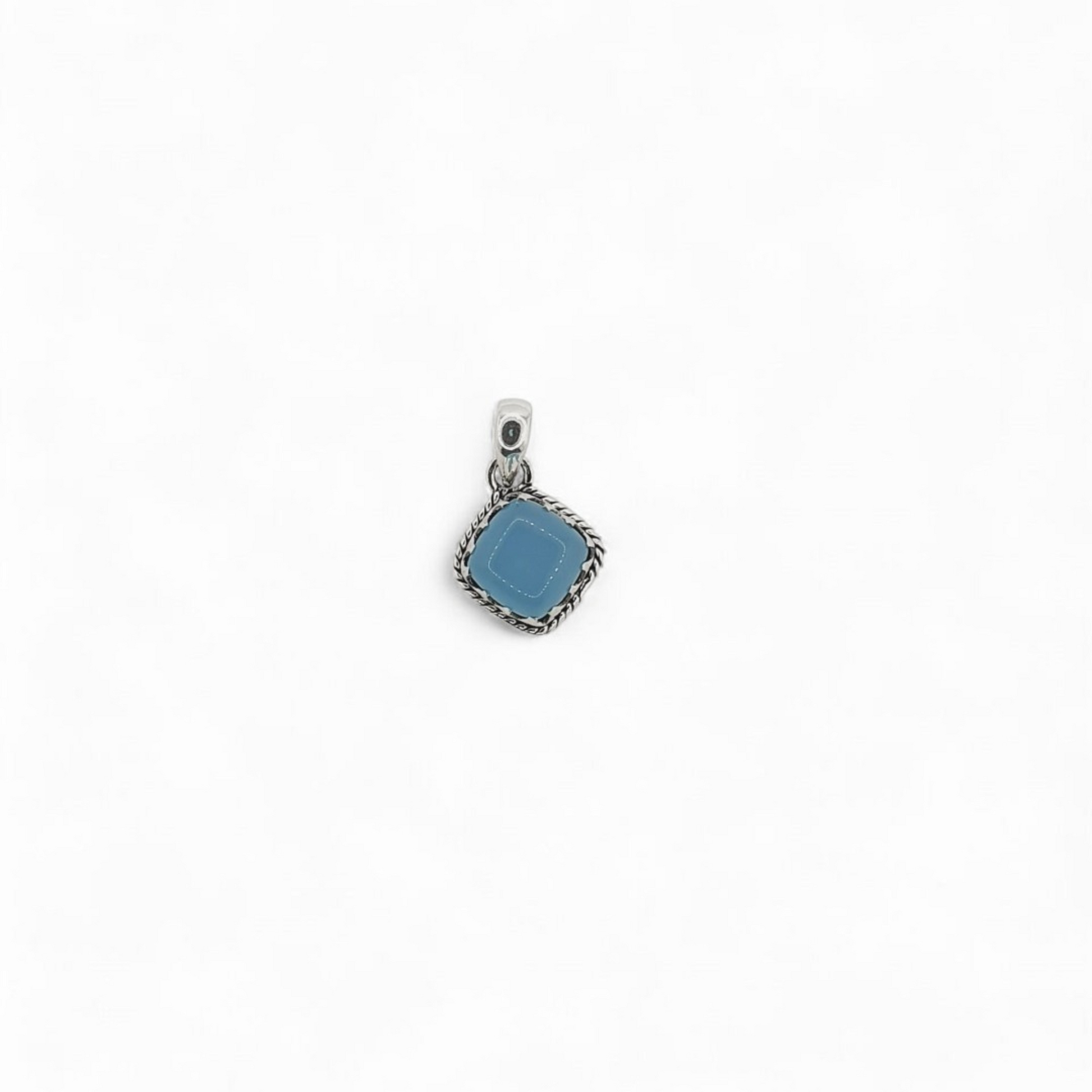 Un colgante de diseño clásico y elegante con piedra natural de calcedonia tallada en forma cuadrada. El marco de plata 925 italiana decorado con un borde de cuentas en relieve le otorga un estilo atemporal que combina perfectamente con cualquier atuendo.