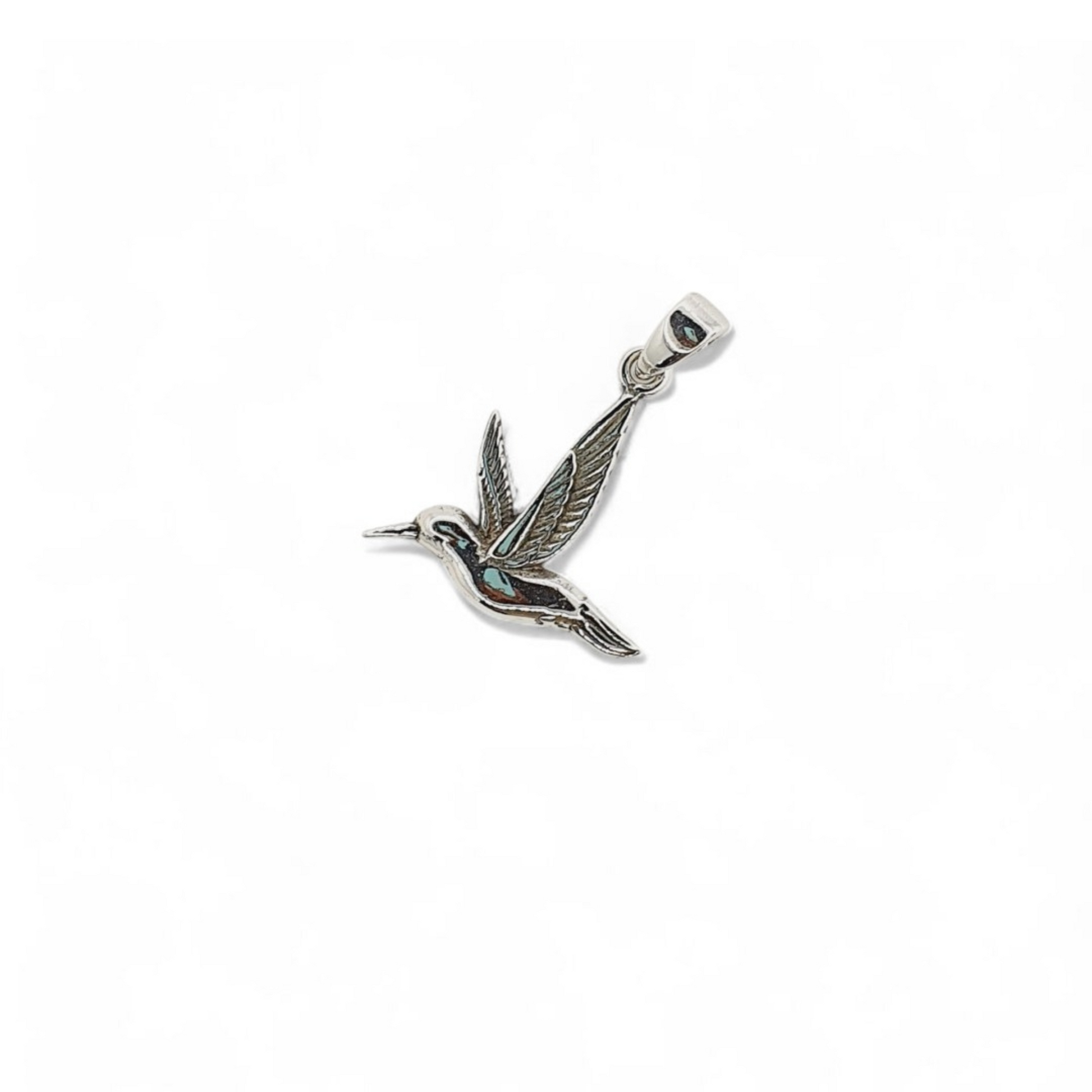 Dije en forma de colibrí en vuelo, elaborado en plata 925 italiana con detalles delicados en esmalte de color. El colibrí es un símbolo de alegría, libertad y energía positiva, considerado un mensajero espiritual que atrae la buena suerte y la abundancia.